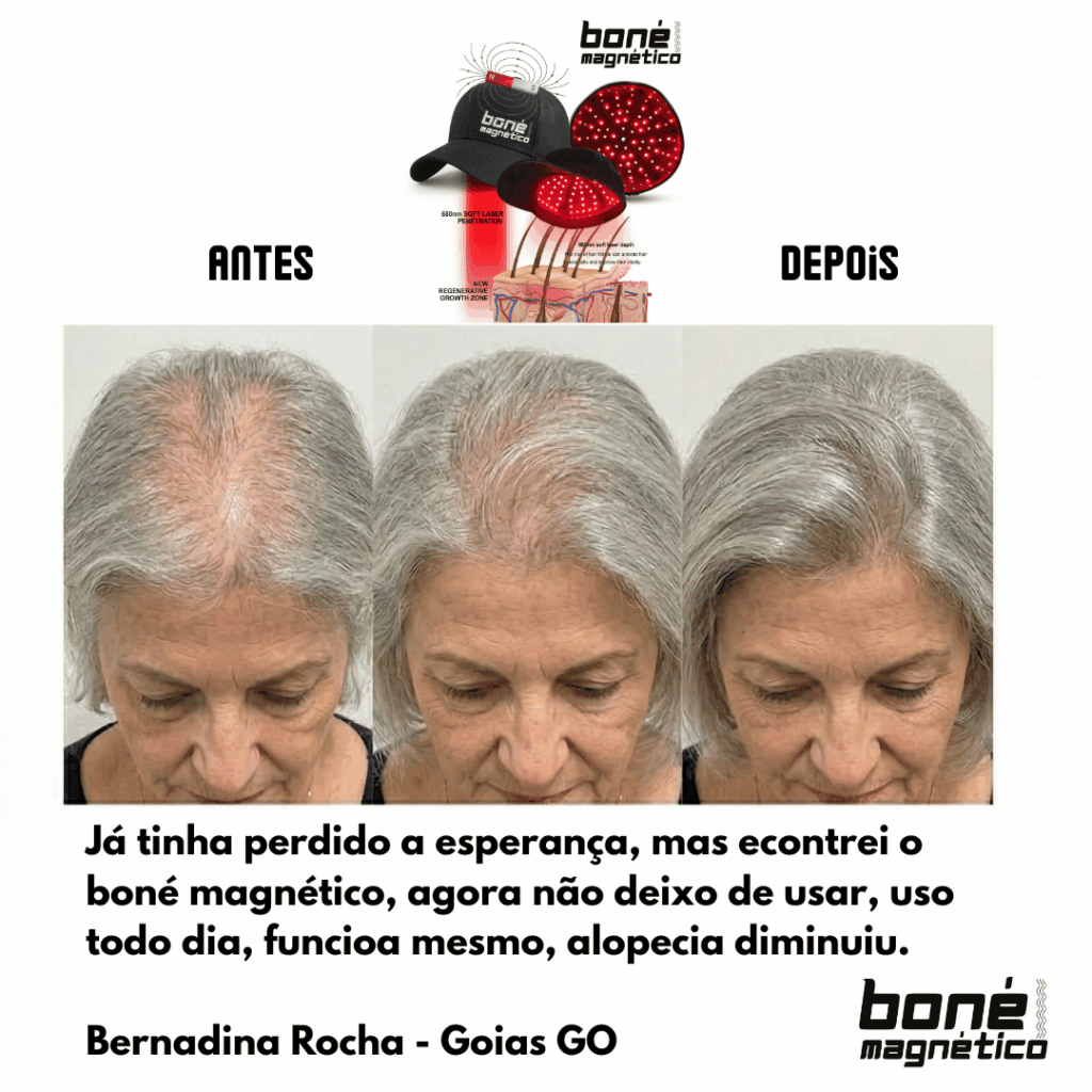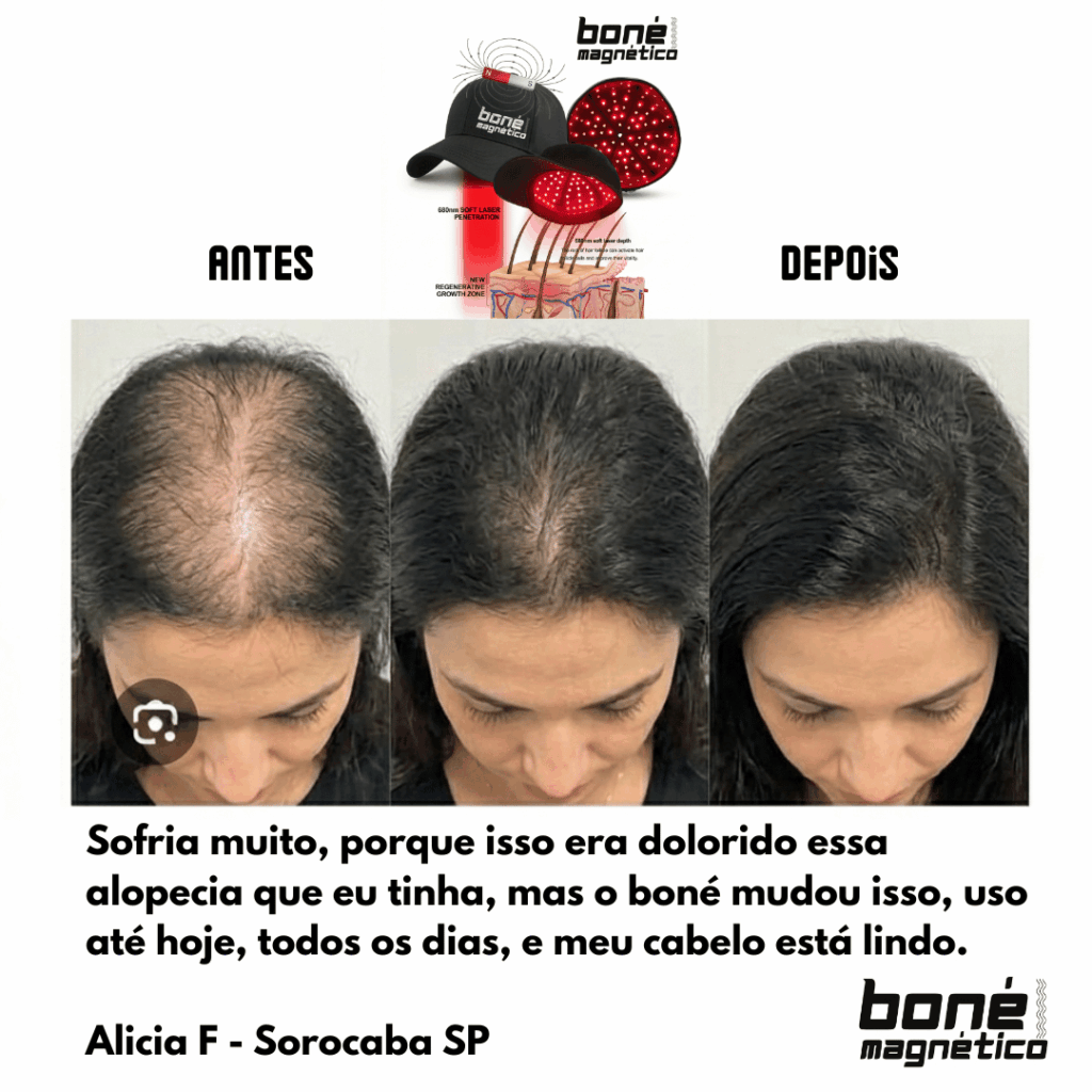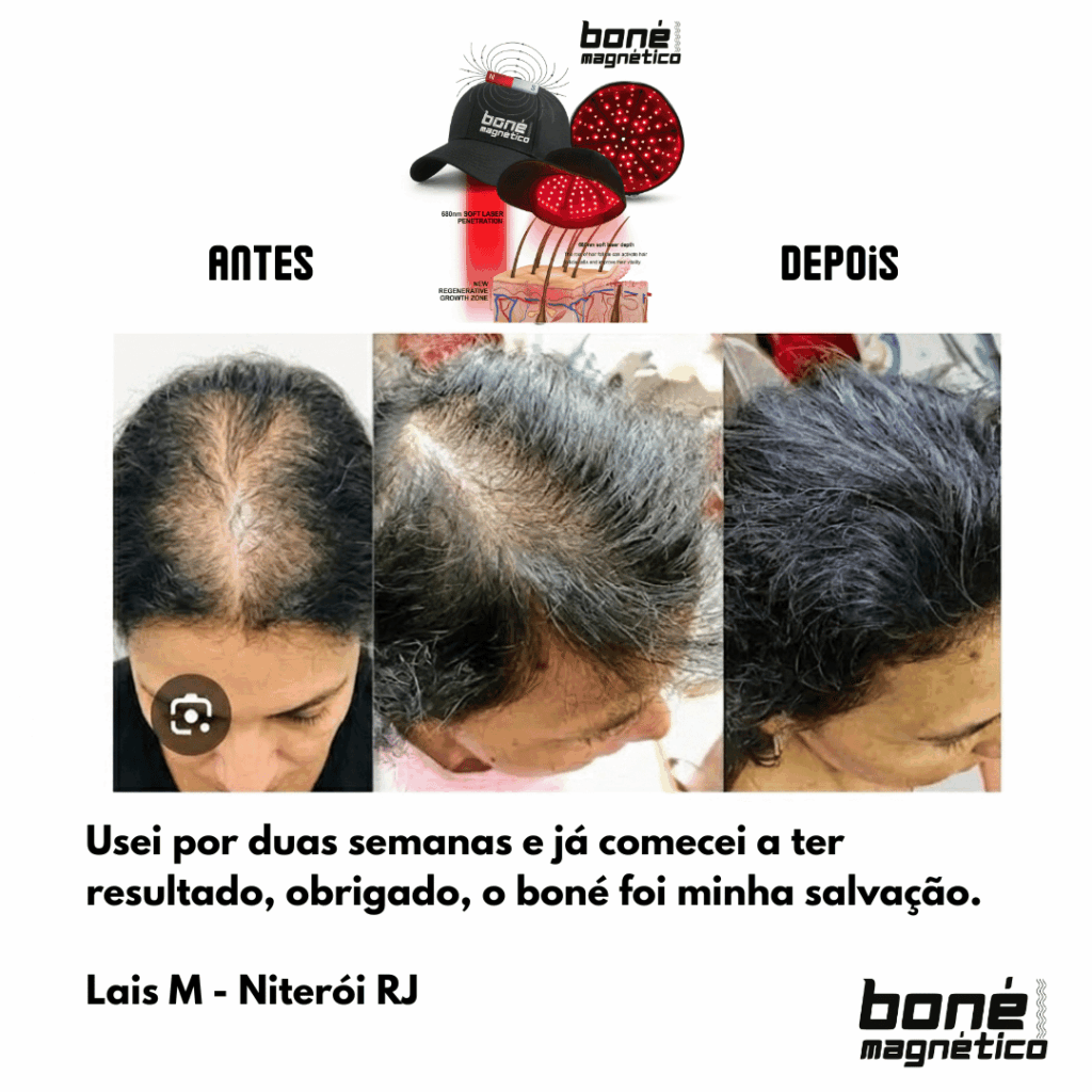 "Depois de algumas semanas usando ao boné, notei que meu cabelo está mais forte e crescendo mais rápido!"