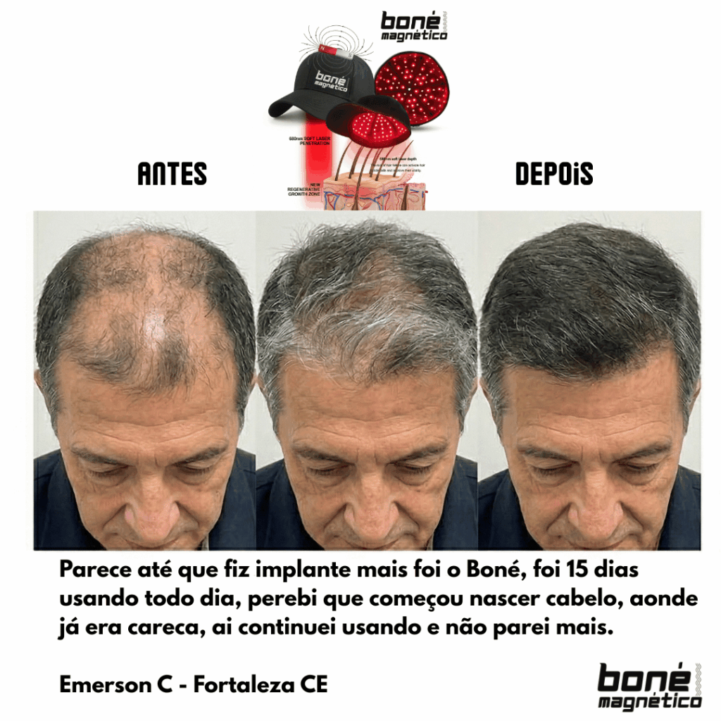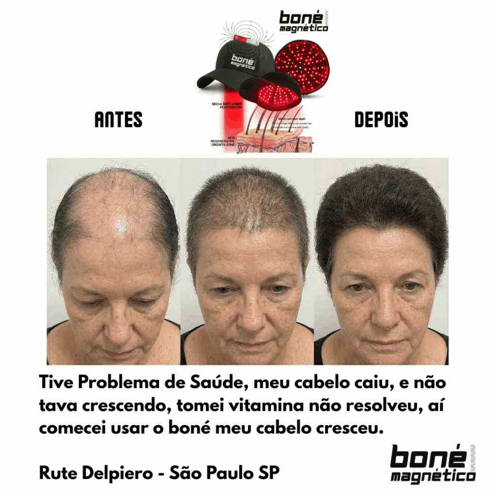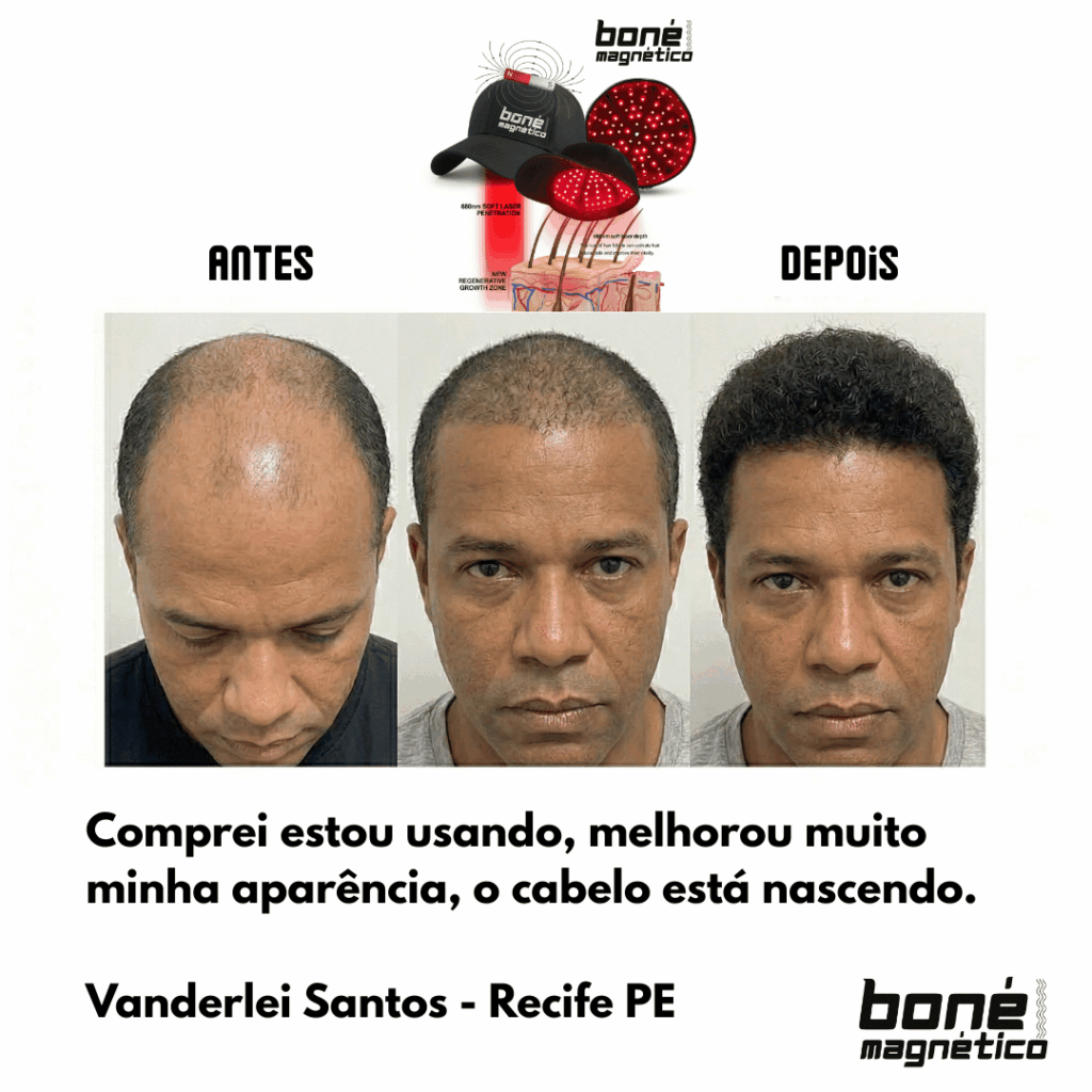 "Depois de algumas semanas usando ao boné, notei que meu cabelo está mais forte e crescendo mais rápido!"